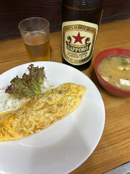 昼から日本酒とつまみを嗜む姿や、入店して真っ直ぐショーケースへ行きパッと1、2品とり席へつき、絶妙タイミングで注文を聞きに行く店員さんとご飯セットを頼む常連さんの一連の動きは、見ていて気持ち良い。まずそれだけでビールがススム。緊張して反射で頼んじゃうなんてまだまだ初心者だな......と反省しつつ、納豆オムレツが来たタイミングでなんとなく味噌汁も追加しちゃう。