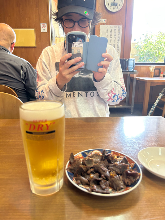 いつもは1軒の紹介ですが、せっかくなのでもう1軒いいですか。その翌日の高松への移動日、友人が熊本でライブということで遠回りし熊本を経由。長年の友人IRIKO/ PANICSMILEのノブと合流し熊本NAVAROから程近い"山本屋食堂"へ。