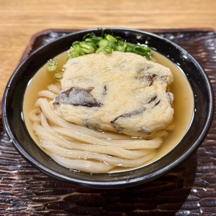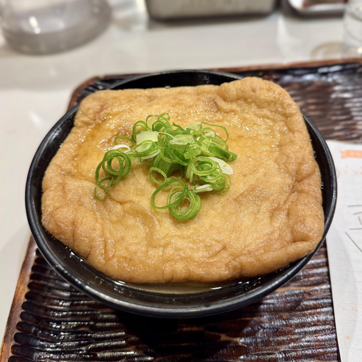 きつねうどんも好きだなあ。うどんが見えないくらい大きいサイズのお揚げ。出汁を吸ってしみじゅわ~でとっても美味しい。温かいうどん限定なので、寒くなった時期に食べたい。