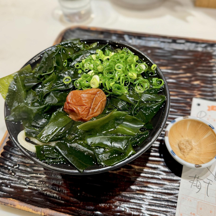 これはわかめうどんに梅干をトッピングしてバングラデシュの国旗に似せたうどんです。バングラデシュうどんと呼んでいます。