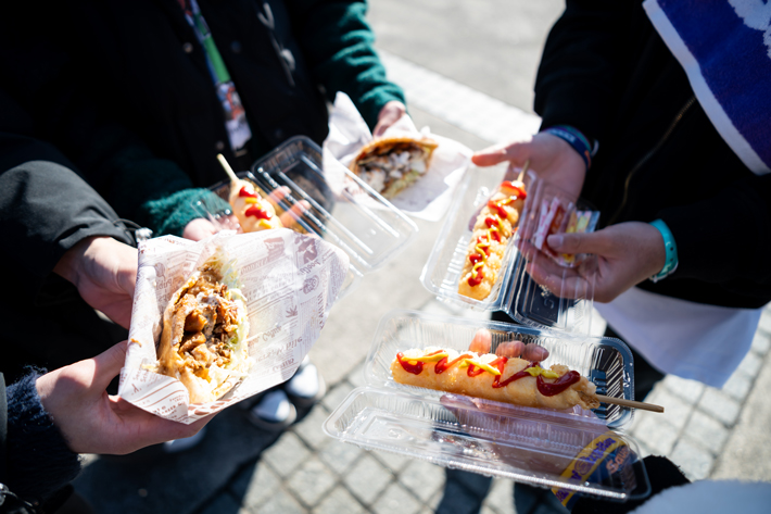 ラインナップだけではなく、フェスそのものにもオススメしたいポイントがいくつかある。例えば、会場の夢メッセ(夢メッセみやぎ)。こちら、大きな会場にもかかわらず仙台市内にあり、アクセス良好なのだ。というのも、仙台エリアの大きな会場は、仙台市内ではなく宮城県内の町にあるものも多く、遠征してきた人たちからは"仙台のライヴかと思って来たのに意外と遠かった"という声も多く聞く。でも、地元在住ライターの私が太鼓判を押そう、"夢メッセなら近い(ほう)だから"と! 仙台駅東口周辺から臨時シャトルバスが出るだけではなく、自家用車なら夢メッセみやぎ第1駐車場が利用できる(今年から事前に駐車券の購入が必要)。さらに電車でも、JR仙石線の中野栄駅から徒歩約20分で着くのだ。大きな会場はアクセスの選択肢が少ない場合も多いが、夢メッセなら選べる。もちろんシャトルバスが一番スムーズではあるけれど、子連れで早めに帰りたい場合等は車や電車もアリ。