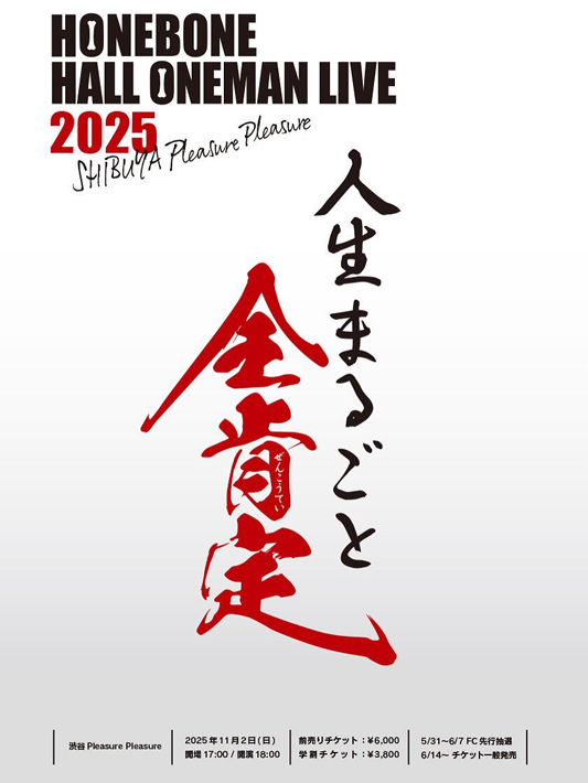 -その新曲も披露される、11月2日開催のSHIBUYA PLEASURE PLEASUREでの"HONEBONE ホールワンマンライブ2025「人生まるごと全肯定‼」"。非常にポジティヴなタイトルですね。