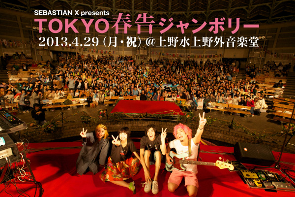 アンコールでは、永原がアコースティック・ステージへ降り立ち新曲「DNA」を披露。8月にアルバムがリリースされること、そしてリリース・ツアーのファイナルが恵比寿LIQUIDROOMで行われることが発表された。着実に活動の規模を増していくSEBASTIAN Xだが、新曲「DNA」はまさに、そんなバンドに相応しいスケール感の大きなメロディとキュートなコーラスが印象的な人間賛歌で、俄然アルバムが楽しみになる。そして、2度目のアンコールで演奏された「ツアー・スターピープル」で、今年の春告ジャンボリーは大団円を迎えた。ライヴが終わると、誰もが笑顔で、しかし名残惜しそうな表情をしながら会場を後にする。誰もが、この日、春告ジャンボリーでの記憶を抱きしめながら、それぞれの毎日へと戻っていく。翌日、また仕事や学校に行かなければ行けない人もいただろう。これから続く日々の中で、今日のような笑顔を浮かべることができない時もあるだろう。だがそれでも、音楽を聴き、隣にいる人と目配せをすることで得られる小さな魔法もある。そんなことを、春告ジャンボリーの存在は教えてくれたように思う。“また来年も来たい!”――私の近くにいた女の子たちは帰り際、こんな風に喋っていた。そう、そうやって毎年、年に1回、この日常に彩を添えてくれるものとして春告ジャンボリーが続いてくれたら、こんなに嬉しいことはない。このイヴェントが東京の春の風物詩になれば、こんなに素敵なことはない。それまで、また私たちはこの日々の中で音楽を聴き、恋をして、喜び、傷つきながら生きていこう。そうしてまた来年の春、少しだけこの現実からはみ出して、大いに飲んで笑えたら最高だ。では、また来年。