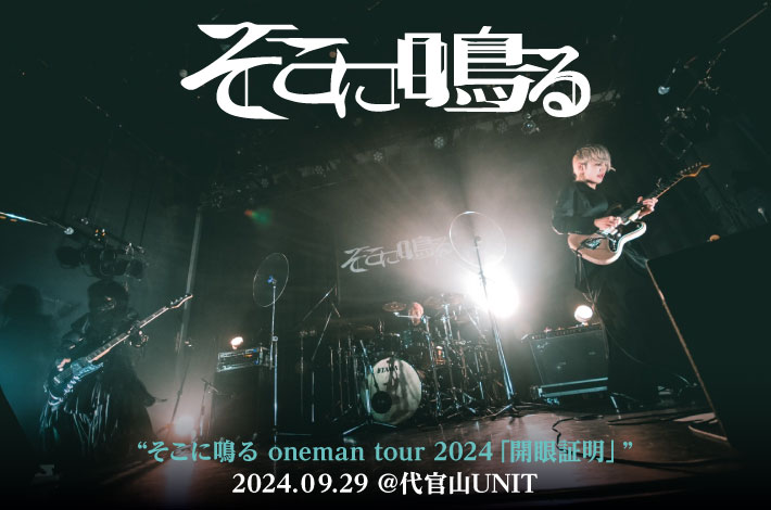 約4年ぶりとなるフル・アルバム『開眼証明』をリリースしたそこに鳴るが、同作を引っ提げたワンマン・ツアーのファイナルを代官山UNITにて開催。アルバムと同様に、バンドの"らしさ"を前面に出した「拝啓、黎明を知って」でスタートし、早速その重厚なサウンドと超絶技巧で観客を沸かせていく。