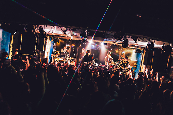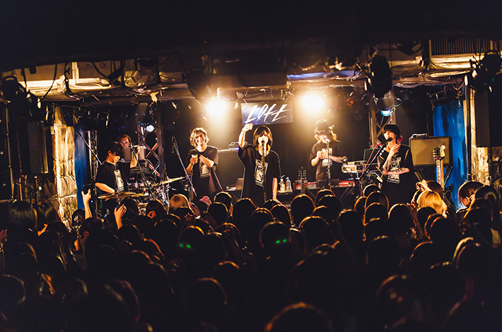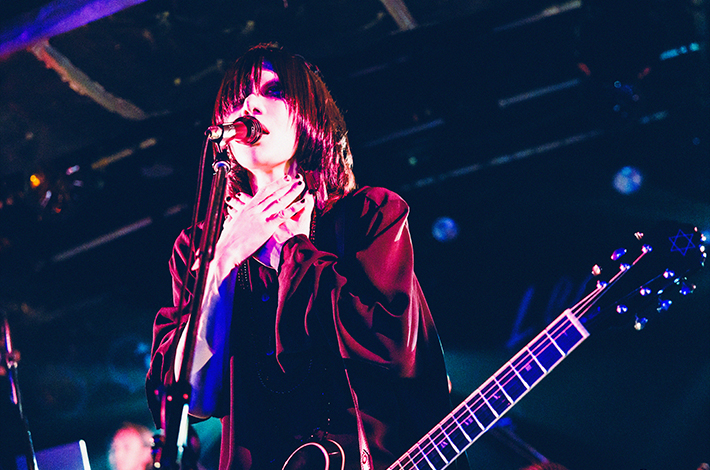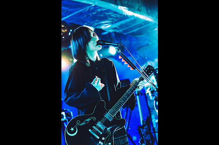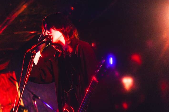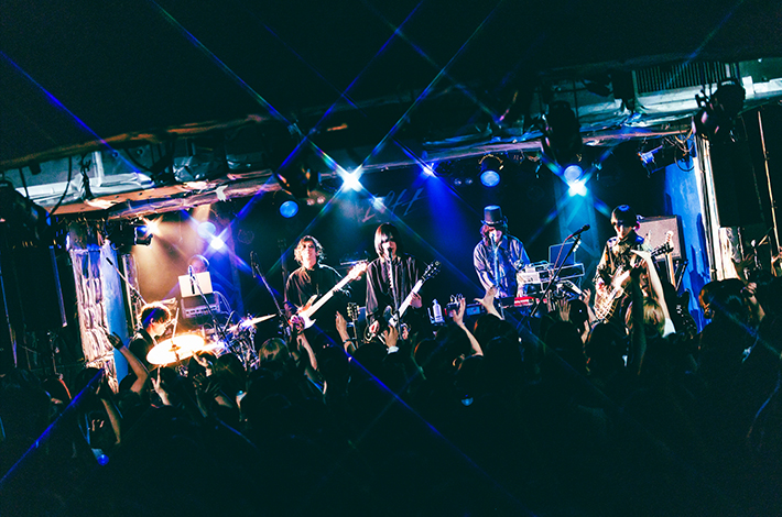 ファンが息を詰めて待ち構えるなか古いヨーロッパ映画のようなSEが流れ悠介、鳥石、高垣、そしてSYUTO(3470.mon/Mani/Key)が登場。少し遅れて有村が現れる。そのまま生演奏に繋がり、「共犯遊戯 / kyōhanyūgi」の精神をかき乱すノイジーなアンサンブルに突入。SYUTOのピアノや3拍子へのリズム・チェンジも特徴的だ。近いトーンの「≒rentogen」のサビで一気にハンズ・アップが起こり、エンディングから間髪入れず鳥石の重いベースが「猫夢/nekoyume」のネオ・サイケな世界観へ誘う。悠介の作る幻惑的なギター・サウンドがシンプルな5ピースのポテンシャルを拡張した。彼等に対してART-SCHOOLとの対バンが時々要望されるのが理解できる、本気のオルタナティヴ・ロックである。