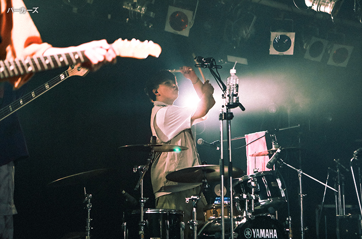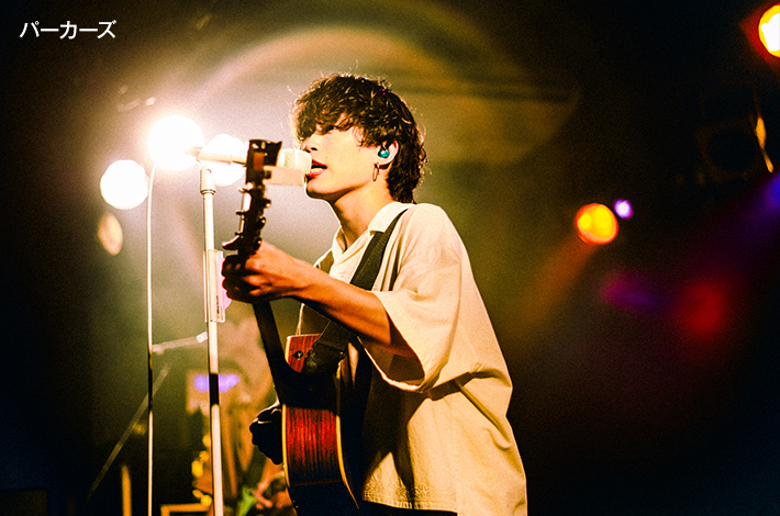 フカツ(Dr)のMCで語られた浪漫派マシュマロとのエピソードは、打ち上げ隊長(!?)らしく飲みエピソードが多めだが、3人共優しいことは十二分に理解できた。後半は観客とじゃんけんを展開する「あいこでしょ」、ギター2本のアメリカン・ロックっぽいハーモニーが気持ちいい「運命の人」と、熱量高く、しかもポップにパーカーズのR&Rビートにオーディエンスを乗せていく。ライヴだと、よりシンプルに"いいR&Rバンドだな"と思わせるグルーヴを感じさせるのだ。さらに、アッパーな楽曲一辺倒にならず、豊田のアカペラで始まり大きなうねりのあるナンバー「雨の音」も盛り込んでくれた。