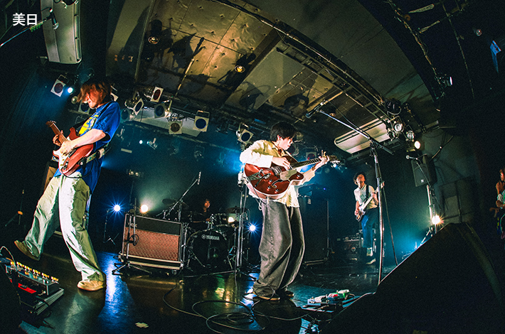 オープニング・アクトは、LIVEHOLICが選出する"PICK UP! ROOKIES"のVol.118に名前を連ねた大阪の4人組バンド 美日。90年代から続く日本のギター・バンドの王道を行くように伸びやかなメロディとビートを持つ「裸足の天使」をオープナーに、全力の演奏で目の前のオーディエンスに存在をアピールした。MCでは関西人らしい素で笑わせるキャラも見せつつ、人と比べることで息苦しくなっている人を誠心誠意フック・アップする「君燦燦」をダイレクトに歌が伝わるパフォーマンスで届け、たった3曲の限られたステージにもかかわらず、バンドが掲げる"あなたの明日を美しい日に。"というテーマを熱く貫徹した。