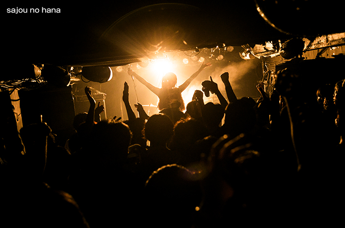 "なんでこんなに暑いの? どんなにパフォーマンスをしても汗をかかないを売りにしているのに......"と話すsana(Vo)。その言葉通り、会場の暑さで汗を浮かべる姿は、普段とは違う新鮮な一面として観客の目に映ったかもしれない。夏の終わりに一緒に楽しみたいと歌った「青嵐のあとで」が始まると、疾走感のあるメロディに合わせて観客が大きく手を掲げ、サビでは歓声で応える。「溺愛」では一転して雰囲気が変わり、力強く胸を打つ歌声でsajou no hanaの世界にぐっと引き込んだ。