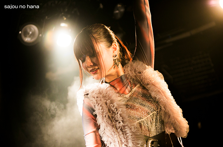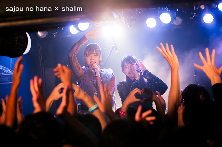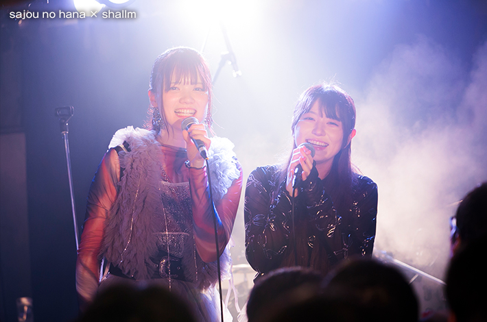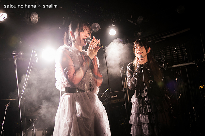 sajou no hanaのステージが終わると、shallmのliaがステージに呼ばれ、MCで匂わせていた初のコラボ・ステージが始まったが、たまたまsanaが白色、liaが黒色のフリルのロング・スカートという対照的でユニットのような衣装が話題に。そして、開演前に2人で話していたカフェ"(喫茶)透明薔薇"の話や、お互い人見知りながらも仲良くなりたいと自己紹介を始め、sanaの好きな食べ物がトマトであるのに対し、liaは食べられないと告白。それでも気まずさはなく、笑顔が絶えない2人のやりとりは、初共演ながら今後の共演にも期待が膨らむ時間だった。