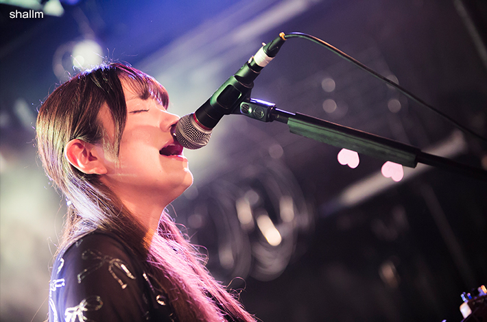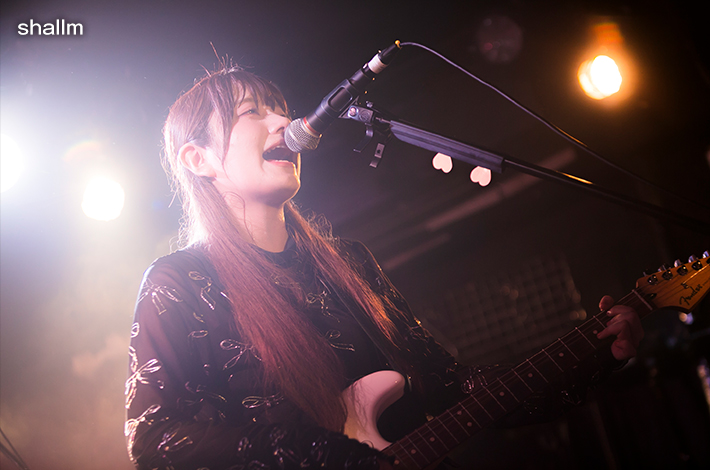 本イベントは、オープニング・アクト IneedSの「Precious days」で幕を開けた。軽快なギター・リフと伸びやかな歌声に、Arina(Vo)の煽りが合わさり、序盤から場内の温度を一気に引き上げ、瞬く間に最高潮へと導いていく。壮大なサウンドに自然とクラップが鳴り響き、会場の一体感がさらに増した「平行線」を披露した後に、今回shallmとsajou no hanaと同じステージに立てる喜びを語った。続いて、ライヴで披露するのは2回目という「Shooting Star」では、勢い溢れるリズムが炸裂し、一斉に拳が突き上がる。ラップ・パートに突入するとフロアでは揃ってヘドバンが起こり、会場の高揚感をさらに加速していった。テンポを落とし披露した「ささくれ」は、かすかな痛みを抱えた歌詞がじんわりと心に届き、まるでオーディエンス一人一人の内面に寄り添うよう。