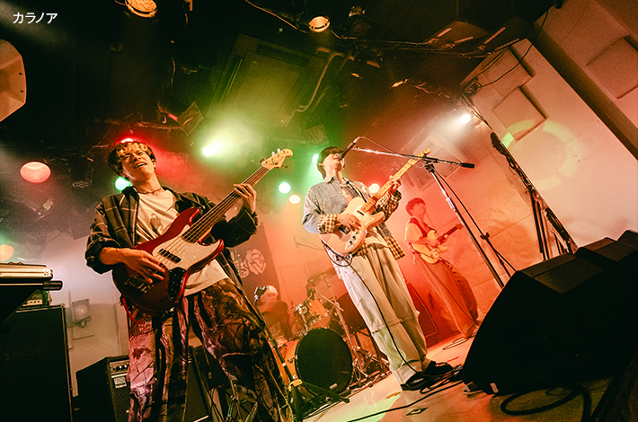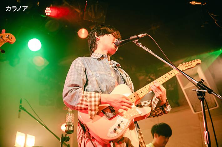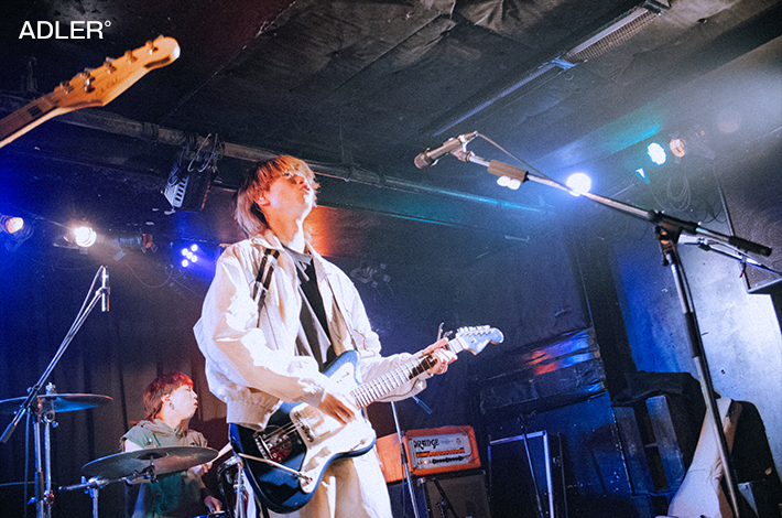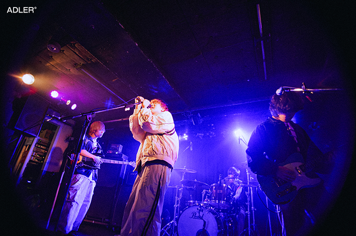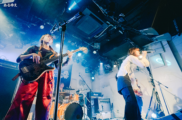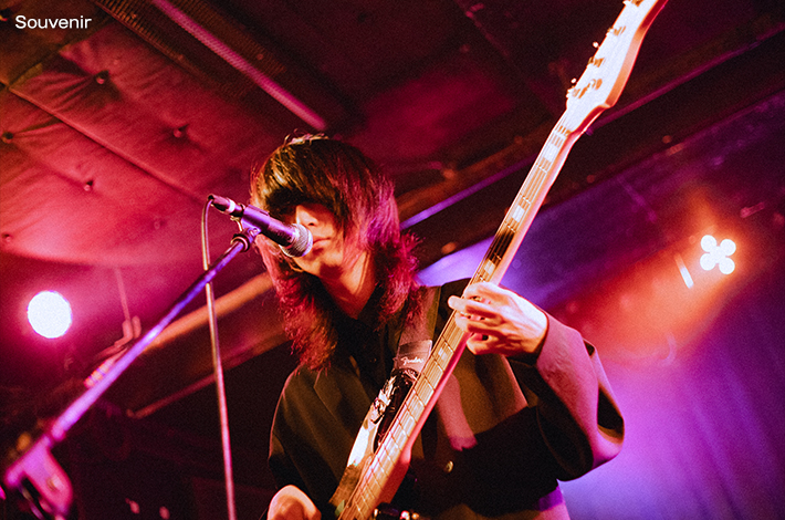 近松に移動すると、すでにSouvenirが渋くてカッコいい音を鳴らしていた。クールに欲しいところで欲しい音が来る玄人好みのバンド・サウンドと杉山悠佑の伸びやかでクリアな歌声が心地よいバランスで届き、リスナーの心を奪う。ポルノ藤田(Dr)のコーラスも効果的だし、近藤空良(Ba)の指捌きやプレイ姿にも目を奪われた。純度の高さは失われるどころか最後の「シャッター」が終わるまで高まる一方だ。静かにもきっちりと体を揺らせて、音世界へ逃避行させるリズムメイカーの実力を遺憾なく発揮した。