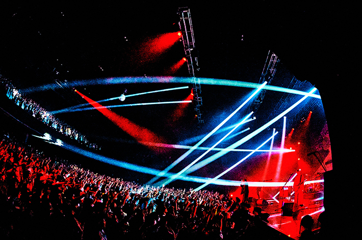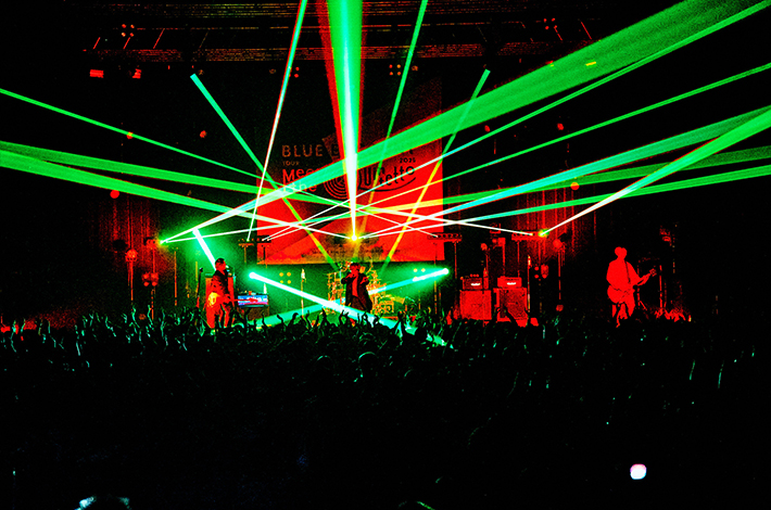 馴染みのSEが流れるなか登場した4人はツアーのテーマのような「クインテット」でライヴをスタート。英語詞をフラットに盛り込めるようになった田邊駿一(Vo/Gt)のマインドと、ファンを含めた"五重奏"が今のブルエンであることを示す。ここから6曲、立て続けにアルバム『Alliance Of Quintetto』から披露するスタイルは曲調こそバリエーションがあるが、そのことも含め、音楽的な志向を明確に伝える効果を最大限に発揮していた。続く「BABEL」はバンドの力量を露わにする8ビート、そして「Bloody Liar」では糸のような細いレーザーが繊細な歌詞での始まりを効果的に演出。バンドインの迫力を際立たせる。
