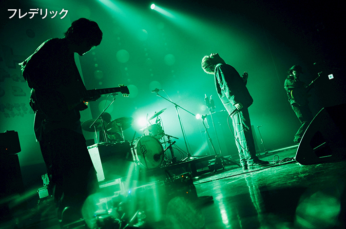 それぞれのバンドが持ち味を発揮することでネクライトーキーを祝福する中でも、フレデリックのショーは徹底していた。サウンド・チェック時に三原健司(Vo/Gt)が"俺等が根こそぎかっさらっていくんで覚悟しといてください"と宣言。まるでワンマン・ライヴのオープニング並の世界観を作り、"あなたの本気ダンスをいただきます!"と夜ダンに意趣返し(?)して怒涛の「オドループ」がスタート。大半のオーディエンスがおなじみのクラップを決めてムードは最高潮へ。「飄々とエモーション」では三原の圧倒的なヴォーカルによる本気且つ難易度高めのコール&レスポンスにオーディエンスをその気にさせ、こぶしを回すバージョン等、もはや新たな合唱では? という域に。さすが、ツアー真っ最中の脂の乗り方をこの日も体現した感じだ。最低限のMCで演奏とパフォーマンスに集中してきた終盤、「スパークルダンサー」の曲中、ファンク・サウンドに沸騰するフロアを指して"ネクライトーキー、よう見とけよ、これがお前たちの作ったフロアの景色や!"と、最大の賛美をフレデリックらしい粋な言葉で放った。彼等のプロフェッショナルでそれでいて遊び心もあるところを尊敬しているとタケイが言う意味が、濃縮されて眼の前に存在していたかのようだ。しかもラストはグリーンの濃淡が美しいライティングも相まって別世界を生み出した大曲「ペパーミントガム」。彼らの音楽的深度にヤラれたフロアはしばしどよめいていた。