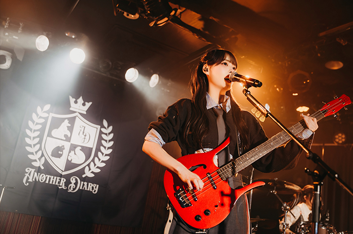 K-POPアイドル・グループのメンバーとして活動していたYUNA(Vo/Ba)、コスプレイヤーとして活動しているCOCO(Gt)、元ステミレイツのメンバーでモデルでもあるGOMI(Dr)の3人で結成された3ピース・ガールズ・バンド、Another Diary。2025年3月に始動し、5月に初お披露目ライヴを行った彼女たちは、そこから約半年後に全国6ヶ所を回る1stツアー"Enchanted"を実施。12月30日に行われたツアー・ファイナルの下北沢シャングリラ公演は、この1年で築き上げてきた全てと、ここからさらに広がっていくバンドの未来を見せつけるステージとなった。