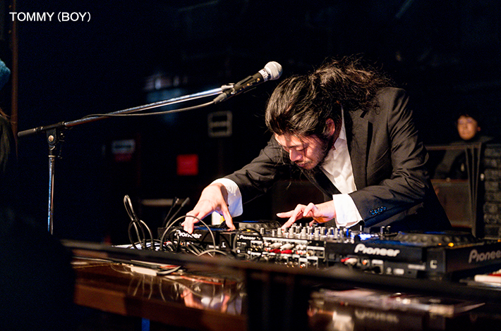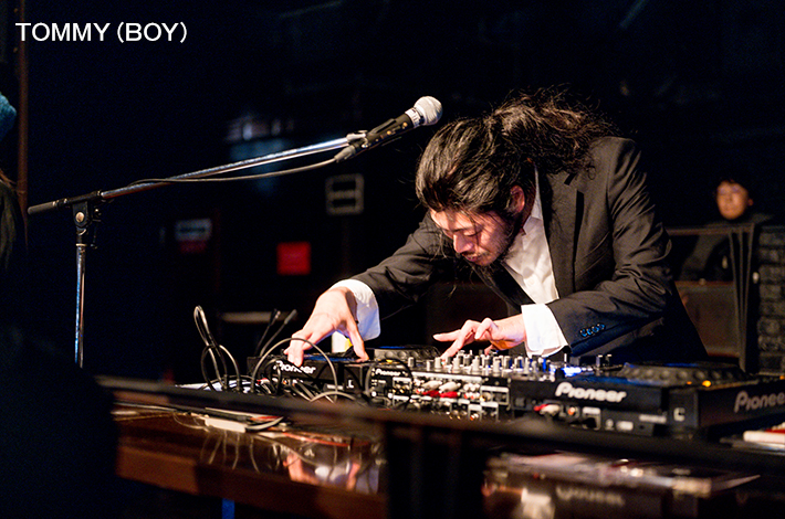 クアトロのフロア左には会見用のテーブルとマイクが見える。会見をするわけではないのだが、何かありそうな仕掛けに一瞬気を取られる。スタートしたTOMMY(セレクトショップ"BOY"オーナー)のDJプレイはダークなエレクトロもラップ・メタルもポストパンクも(DRY CLEANINGだけは分かった!)フェティッシュな側面で繋いでいき、フッとsyrup16g「ex.人間」を挟むといきなり胸の奥に響きすぎたり。彼個人の直感的なプレイが、その実この日の2バンドへのリスペクトに感じられた。