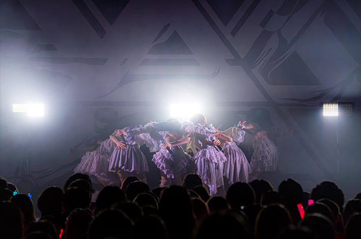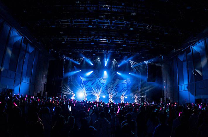 さらにZOCX名義になってからの新曲であり、SEを除けば実質アルバム『六姫無双』の1曲目を飾る「超絶人間天使ちゃんの老害予防講座 」の披露へ。世の中の"おぢ"に対して6人のユニゾンで"きもいきもいきもいきもいきもい"と連呼するインパクト大のこの楽曲。女性ファン比率の高いZOCXの現場にいる数少ない"おぢ"はどんなリアクションをしているかと思えば、なんだかとっても楽しそう。「イミテーションガール」では大森が煽りを入れ、フロアの熱気がグンとアップ。そんな状態でパフォーマンスした「LiBiDo FUSION」では、ピンクの照明のなか艶めかしい踊りとセクシーな歌声でオーディエンスを魅了した。