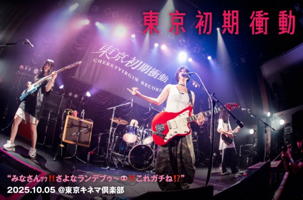 インディーズでの十分な活動を経て、9月にアルバム『東京初期衝動』でメジャー・デビュー。"自分たちの初期衝動は出し切った"としーな(Vo/Gt)が語り、今新たなフェーズに突入しようとしている東京初期衝動が、"みなさんッッ‼️さよなランデブゥ〜🐽‼️これガチね⁉️"と意味深なタイトルを付けたワンマン・ライヴを開催した。