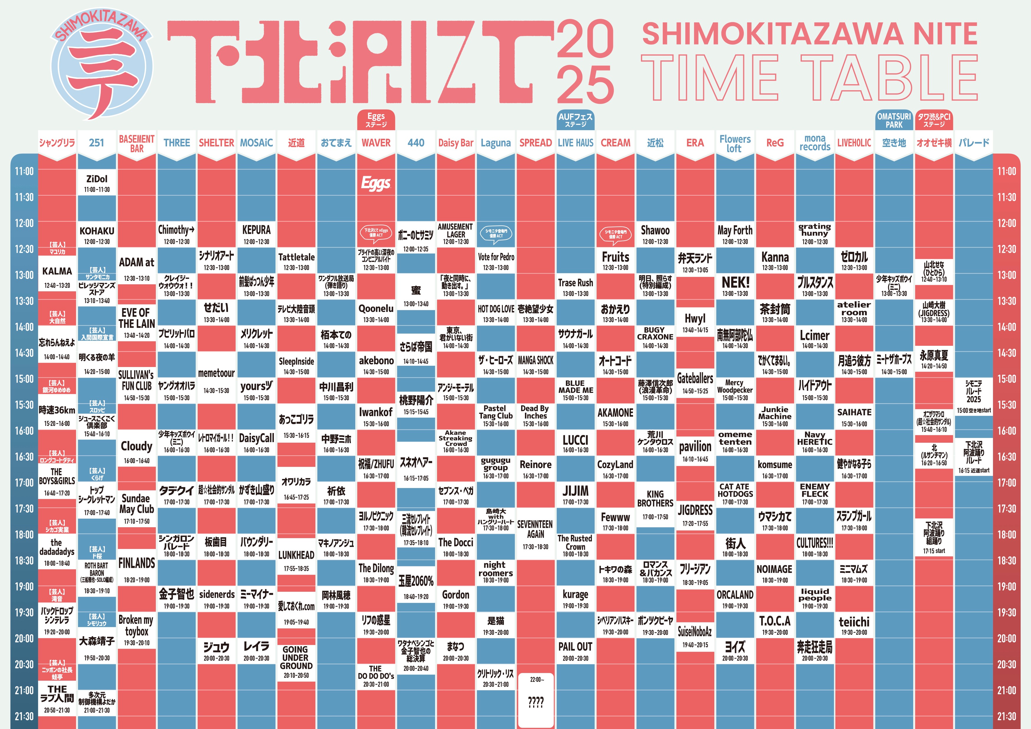 最終出演アーティスト [NEW]:KOHAKU / MANGA SHOCK / yoursヅ / セブンス・ベガ / プライドの高い深夜のコンビニアルバイト / 壱絶望少女 / 茶封筒 / 弁天ランド / 街人 / 下北沢一番街やっとこ連